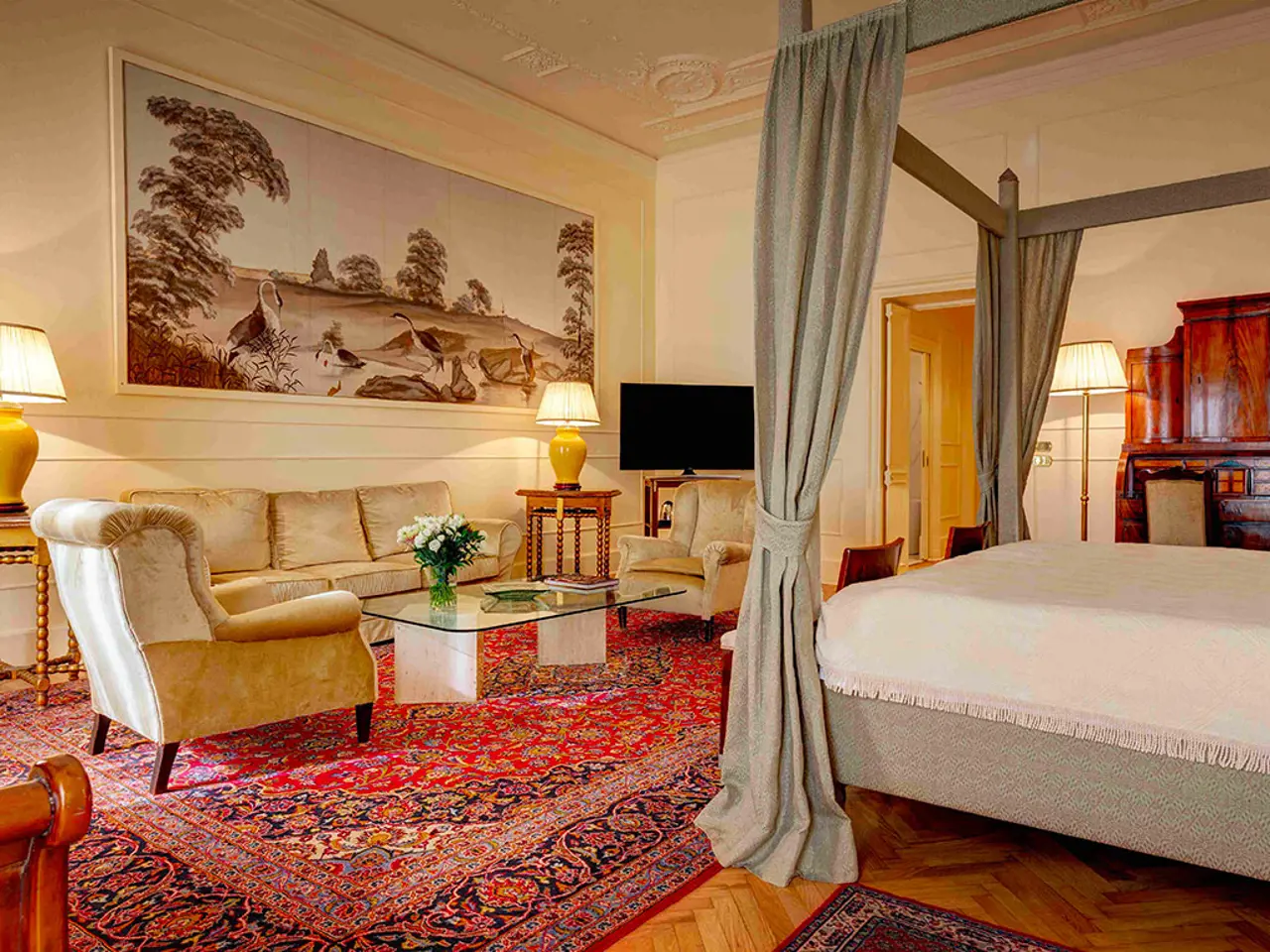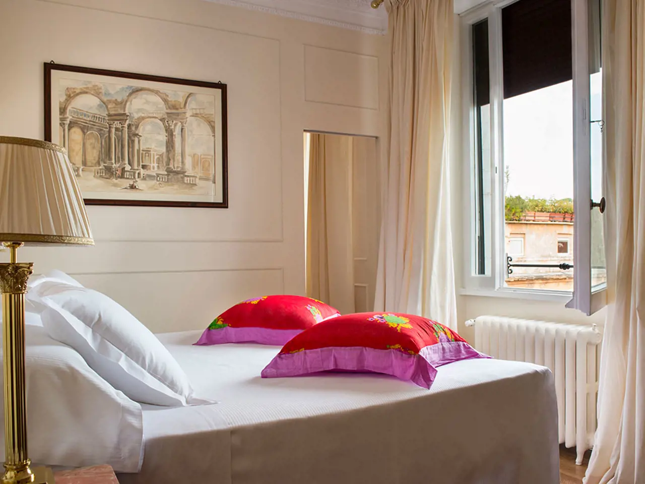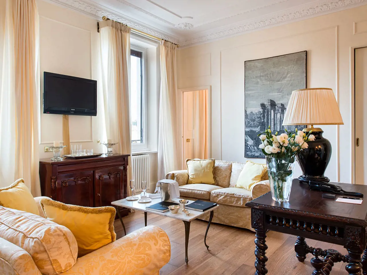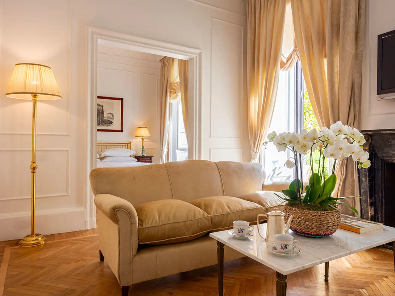 Questa lussuosa sistemazione si compone di una elegante junior suite con letto “king size” o due letti doppi e spaziosa area soggiorno, comunicante con una camera deluxe con letto matrimoniale o a due letti. Alcune offrono una esclusiva vista su Via del Corso o su Trinità dei Monti. La family suite dispone di due bagni, dotati di vasca e doccia ed elegante set di cortesia Sorelle Fontana. Aria condizionata, accappatoio, ciabattine, cassetta di sicurezza, wifi gratuito, Tv satellite, telefono, serratura con blocco di sicurezza.