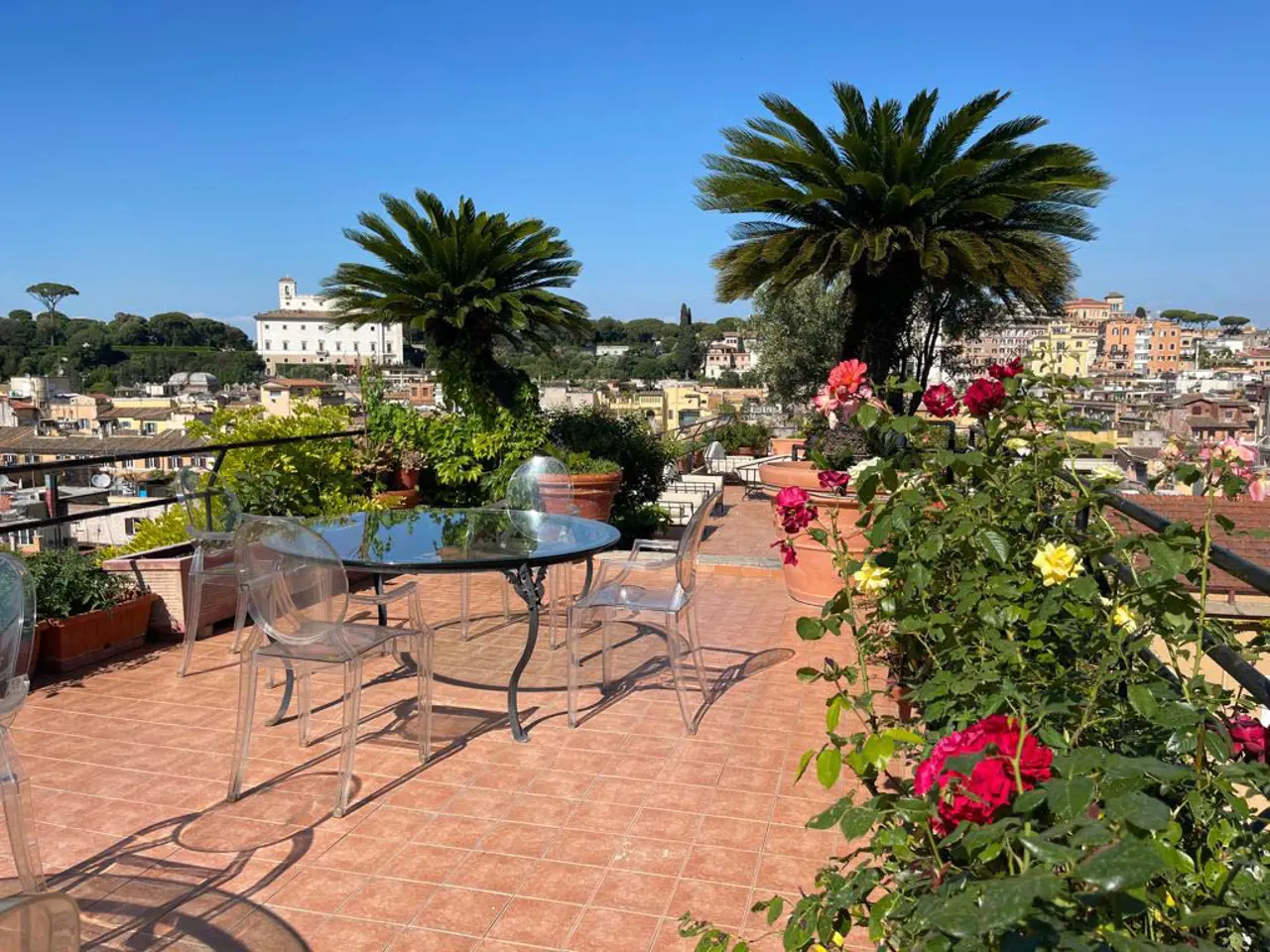 La Terrazza Paradiso del Grand Hotel Plaza è un'oasi di pace sospesa nel cuore della Città Eterna, un luogo incantevole dove il tempo sembra fermarsi, perfetto per chi cerca un ambiente esclusivo e romantico. Ideale per organizzare eventi, matrimoni, feste o riunioni private, cene intime ed esclusive, interviste, shooting fotografici o degustazioni di sigari, la Terrazza Paradiso offre un'atmosfera magica che rende ogni momento indimenticabile. Questo spazio, pensato per chi desidera il massimo del comfort e della raffinatezza, è progettato per offrire un ambiente privato e di classe, perfetto per rendere qualsiasi occasione davvero speciale e memorabile.
