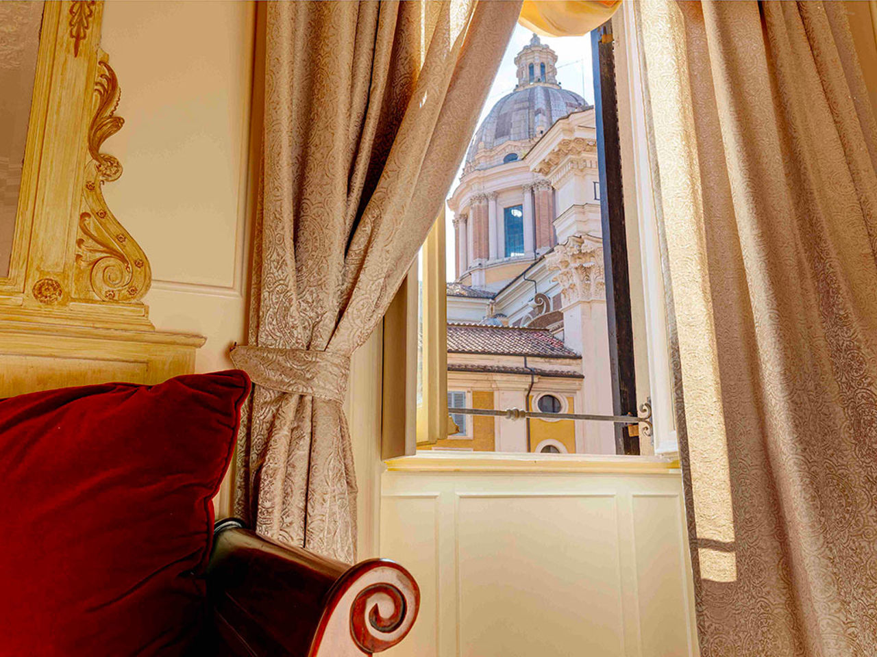 This luxury accommodation is composed by a spacious Junior suite with "king size bed" or two double beds and elegant seating area, connecting to a deluxe double or twin room. Some offer a view on Via del Corso or Trinità dei Monti. This solution provides two separate bathrooms equipped with bathtub and shower, featuring Sorelle Fontana exclusive toiletries set. Air conditioning, Bathrobe, Slippers, Safe, Minibar, free WiFi, satellite Tv, telephone, security lock.